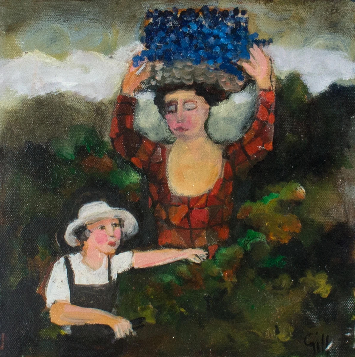 image: Murray Gill, Grape Harvest. Acrylic on canvas.