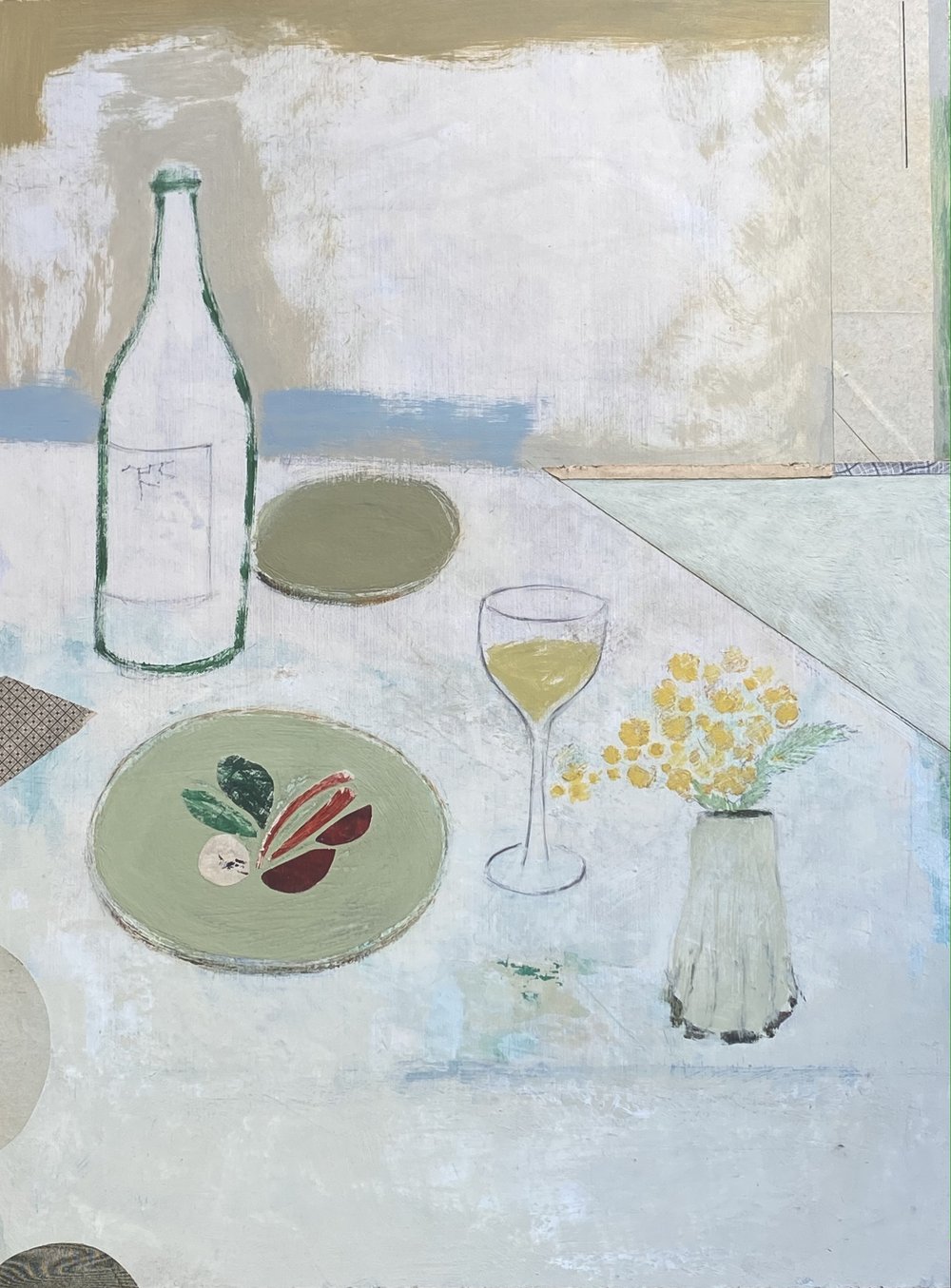 image: collage and acrylic on board, by Max Ososki.